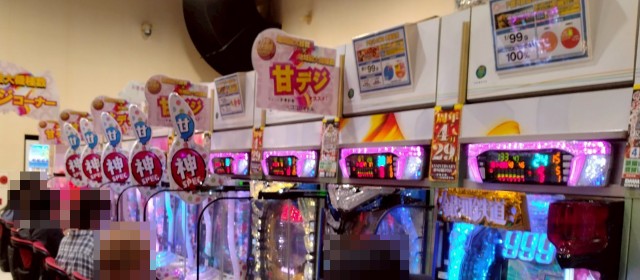 上記以外では様々な甘デジスペック、同店の大きな特徴となるPB機にファンが群がっていた。