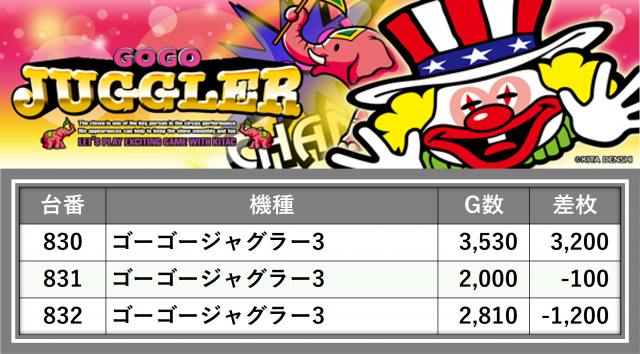 厳選された取材対象機種をはじめ、その他スロット全体から好記録が飛び出した!プレイヤーが楽しんだ1日を下記データにて振り返ってみて欲しい。