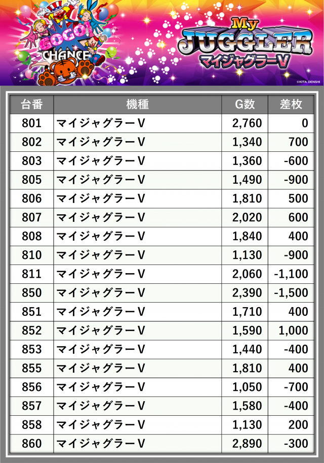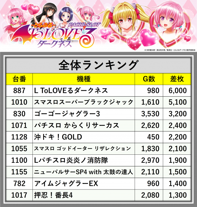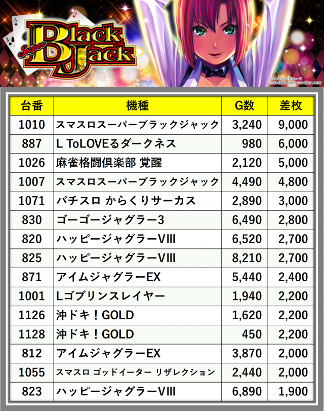 ※差枚数順に掲載しています