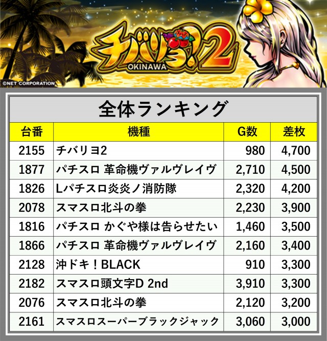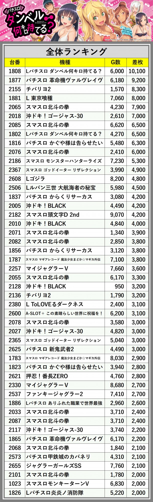厳選された取材対象機種をはじめ、その他スロット全体から好記録が飛び出した!プレイヤーが楽しんだ1日を下記データにて振り返ってみて欲しい。