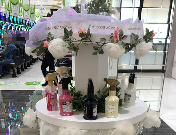 消臭グッズが置いてある棚やトイレにまで施されている華やかな装飾など、こまやかな気配りも魅力的な「オーギヤ垂水店」。厚い支持を受けている理由を、遊技面と環境面の両方から体感したREAL取材であった。
