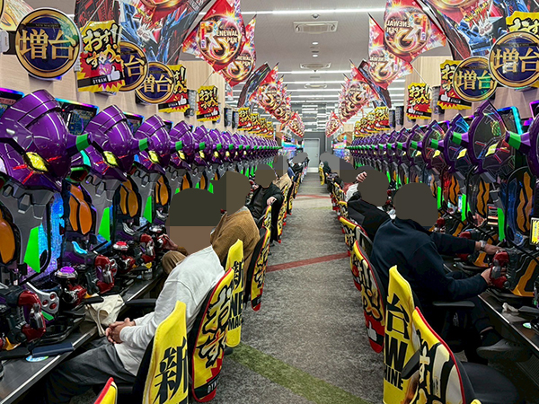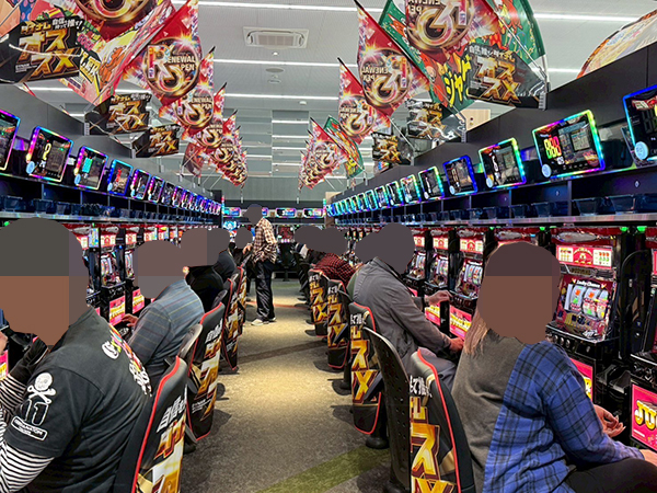 店内には老若男女を問わずプレイヤーが集合。パチンコ・パチスロの各シマから活気が感じられた。