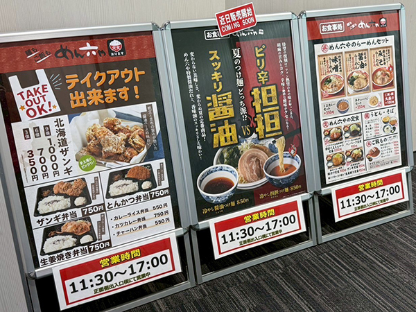 同店はメニュー数が豊富な食事処を完備。休憩時間などを利用して、空腹を満たすことができる。