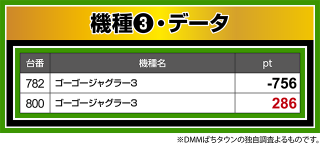 『ゴーゴージャグラー3』は、782番台がプラス。