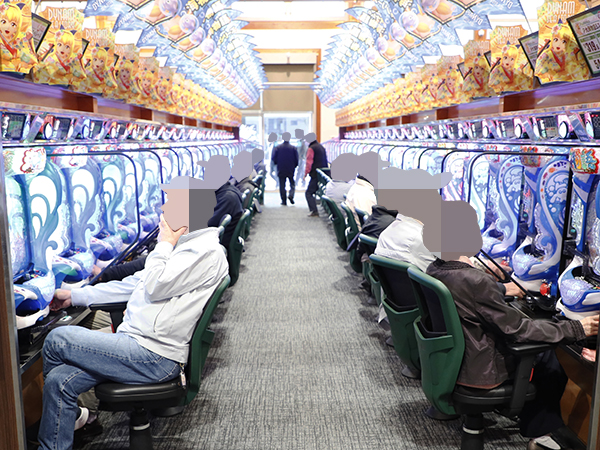 取材時は既に多くのプレイヤーであふれており、パチンコ・パチスロを問わず楽しげな表情でいっぱいだった。