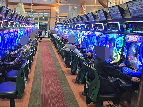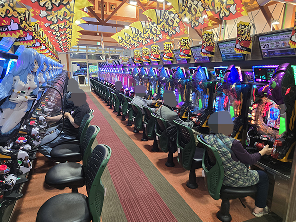 取材時は既に多くのプレイヤーが集結し、パチンコ・パチスロを問わずにぎやかな状況となっていた。