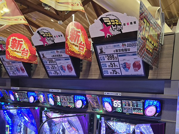 500円/90枚パチスロの支持も厚く、空き台が見当たらないほどの盛況ぶりだった。