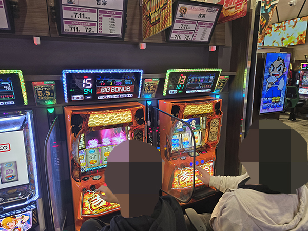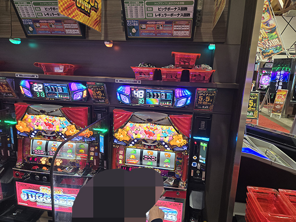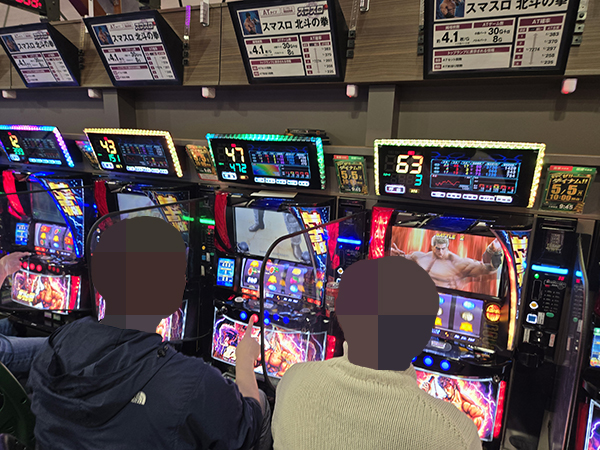 1000円/46枚パチスロに目を向けると「スマスロ北斗の拳」や「マイジャグラーⅤ」が微笑ましい状況。機種性能を最大限に発揮するプレイヤーが複数見られた。