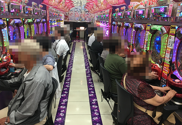定番機種である海物語シリーズの支持も厚く、シマ内はにぎやかな状況。