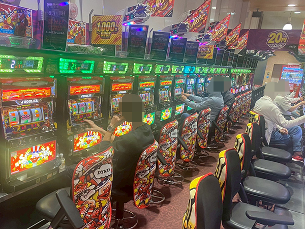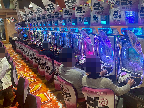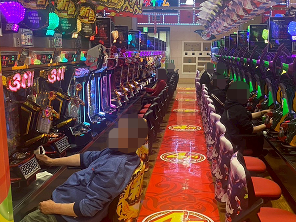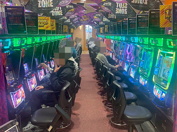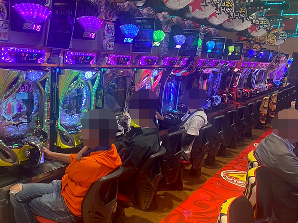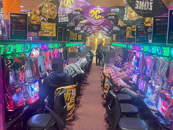 取材時は既に多くのプレイヤーであふれており、パチンコ・パチスロを問わず楽しげな表情でいっぱいだった。