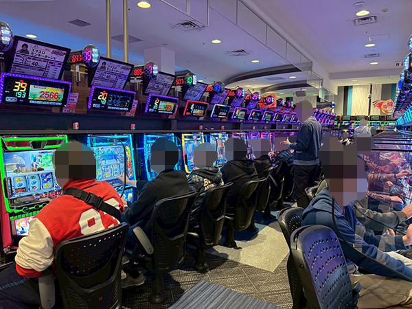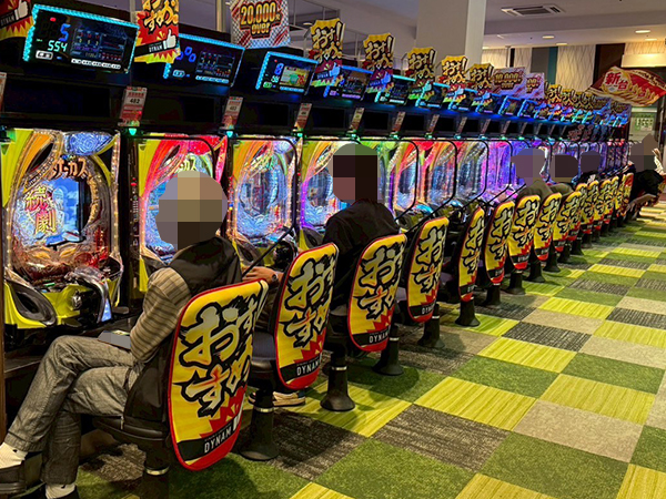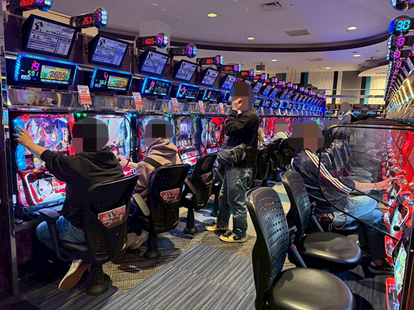 取材時は既に多くのプレイヤーであふれており、パチンコ・パチスロを問わず楽しげな表情でいっぱいだった。