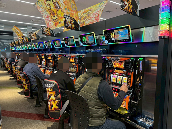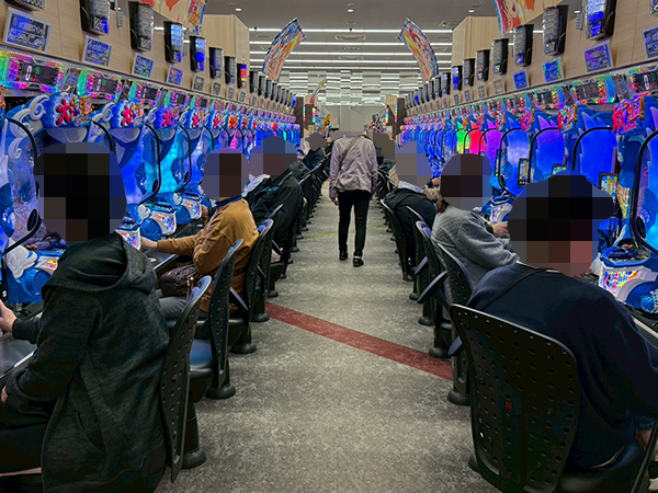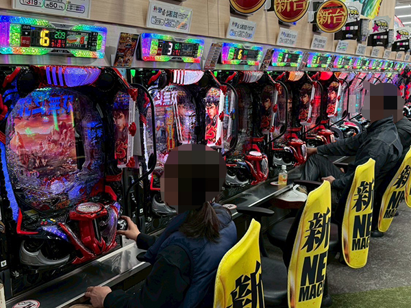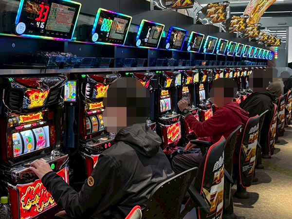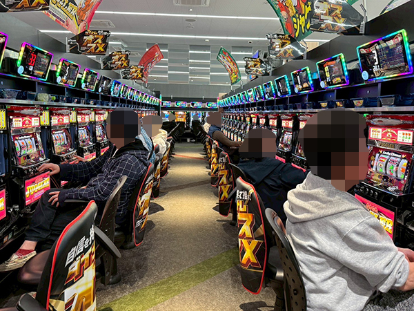 取材時は既に多くのプレイヤーであふれており、パチンコ·パチスロを問わず楽しげな表情でいっぱいだった。