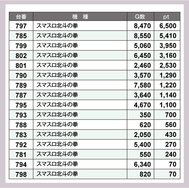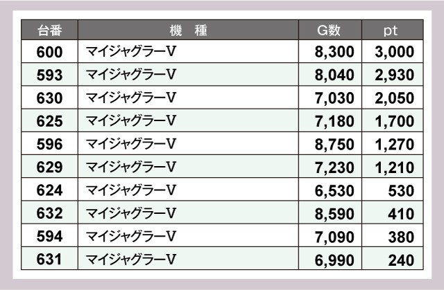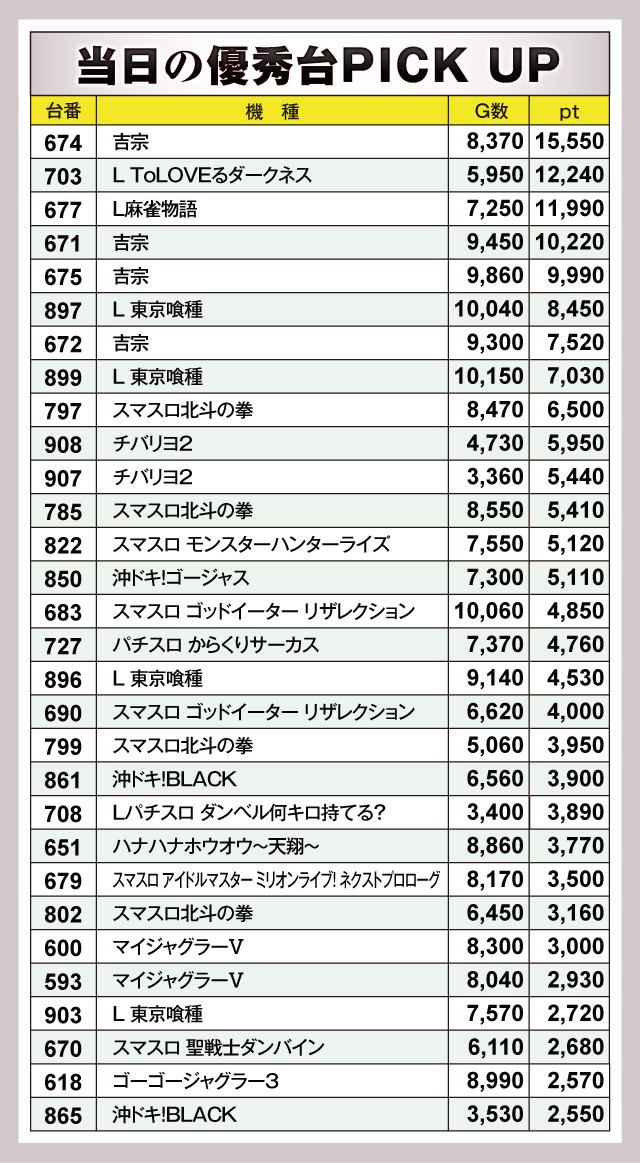 『スマスロ北斗の拳』や『マイジャグラーⅤ』などの定番機種も4桁pt続出と絶好調で、プレイヤーたちは納得の遊技ができていたように思う。
