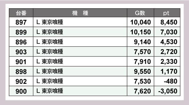 『L 東京喰種』や『L麻雀物語』も微笑ましい状況。+8,000pt超、+1万pt超といった優秀台を確認できた。