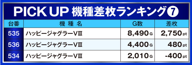 今回ピックアップした7機種はいずれも人気が高く、全体的に高稼働を維持しながら1日を終えた印象。とくに『L 東京喰種』は4台すべてが8,000G以上も回されていて、現在の人気ぶりがうかがえる。