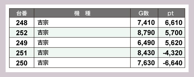 『吉宗』は結果に波はあるものの、プラスとなった3台は全て+5,000ptオーバーと圧巻のパフォーマンスを披露していた。