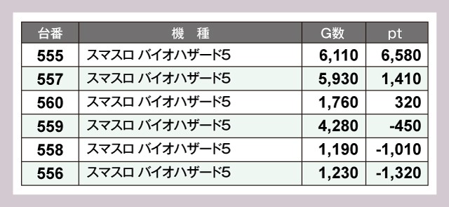 さらに『スマスロ バイオハザード5』からは+7,000pt、『ハッピージャグラーVⅢ』からは+2,000ptの優秀台が誕生していた。