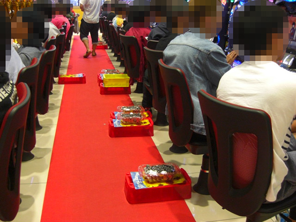 20円パチスロも空き台が見当たらないほどの状況で、朝に引き続きハナハナシリーズと「バジリスク~甲賀忍法帖~絆」が満席状態。いずれのシマにおいても盛り上がりが非常に大きく、プレイヤーたちは充実した時間を過ごしているように思えた。
