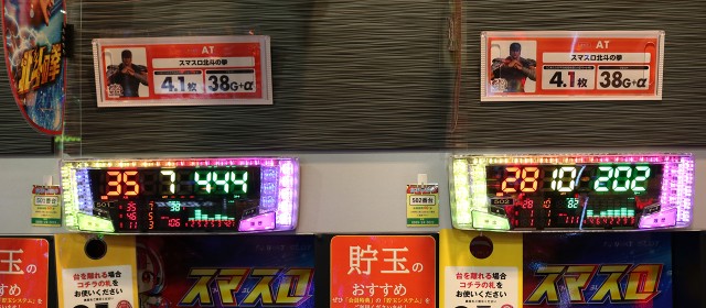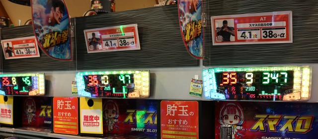 取材に訪れたのは午後の早い時間帯だったが、『スマスロ北斗の拳』ではボーナス回数を伸ばす台が相次ぎ、その他にも『スマスロ ゴッドイーター リザレクション』『戦国コレクション5超極楽LOOP』『Lパチスロ ありふれた職業で世界最強』といった台数少なめの機種も好調が窺えた。