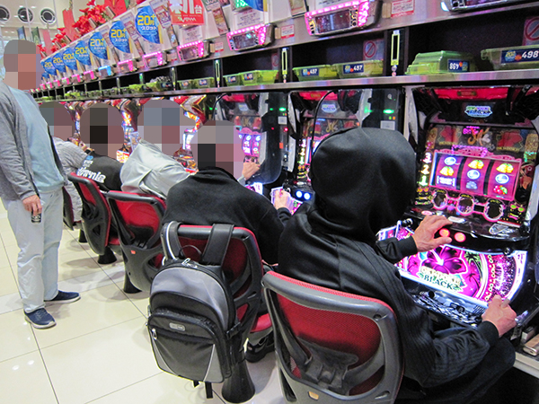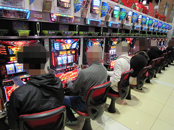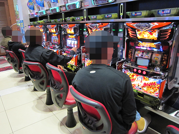 多彩な機種構成で人気の高い500円/89枚パチスロでは、真剣な表情でレバーを叩くプレイヤーの姿を数多く目撃している。