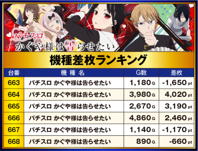 Super D’STATION高崎本店 差枚ランキング(4月1日)