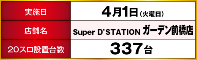 Super D’STATIONガーデン前橋店 差枚ランキング(4月1日)