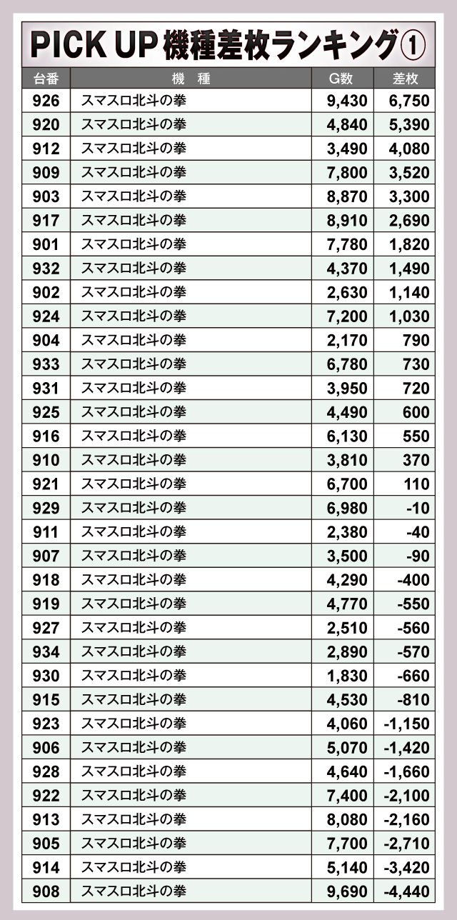 今回のPICK UP機種は全5機種で、同店のメイン機種である『スマスロ北斗の拳』の+6,750枚、『マイジャグラーⅤ』の+5,860枚をはじめ各機種からハイスコアが続々と発生。しかも、今回対象となった機種は半数以上の台がプラス差枚となっているだけに、それぞれのシマは常に熱気とファンの笑顔で溢れ返っていた。