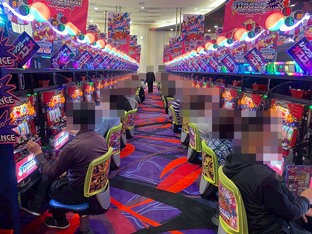 店内をみてみると、パチンコとパチスロの両方が盛り上がりをみせていた。