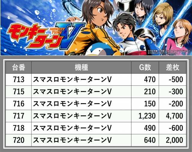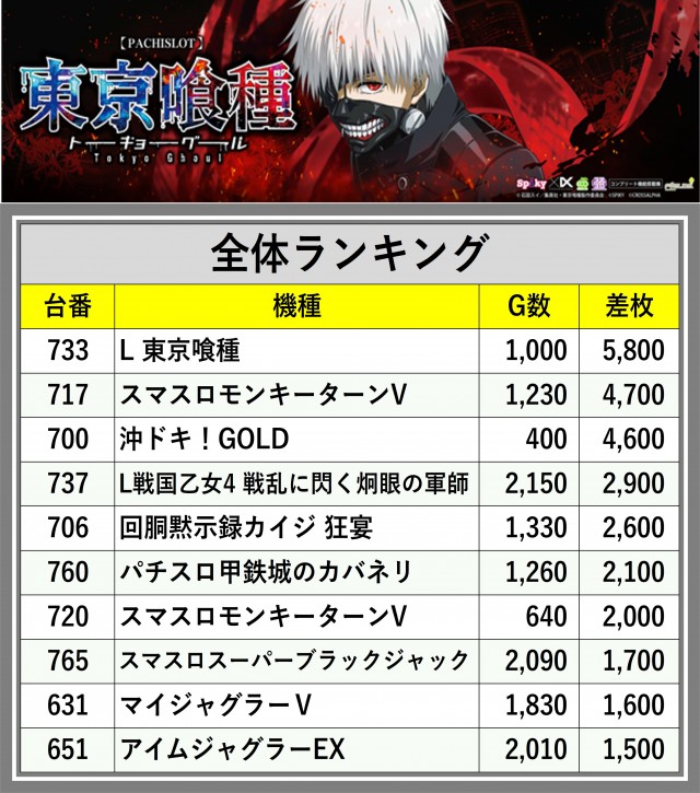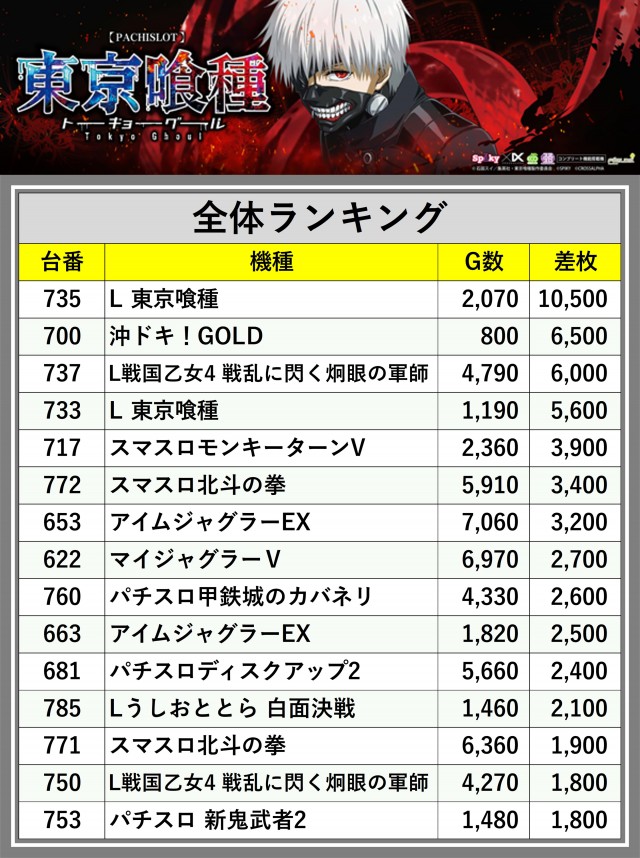 厳選された取材対象機種をはじめ、その他スロット全体から好記録が飛び出した!プレイヤーが楽しんだ1日を下記データにて振り返ってみて欲しい。