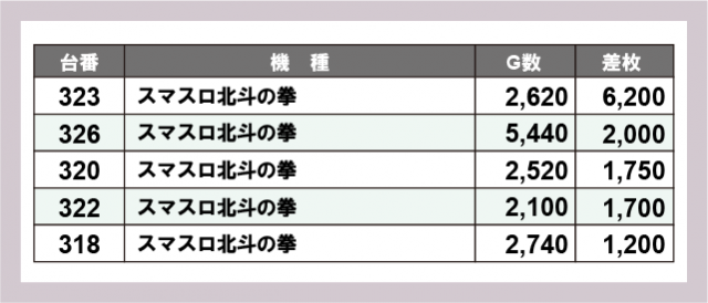 ※差枚数順に掲載しています
