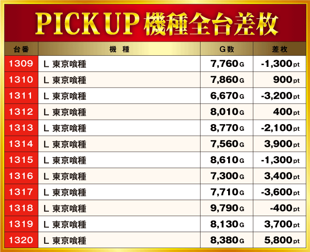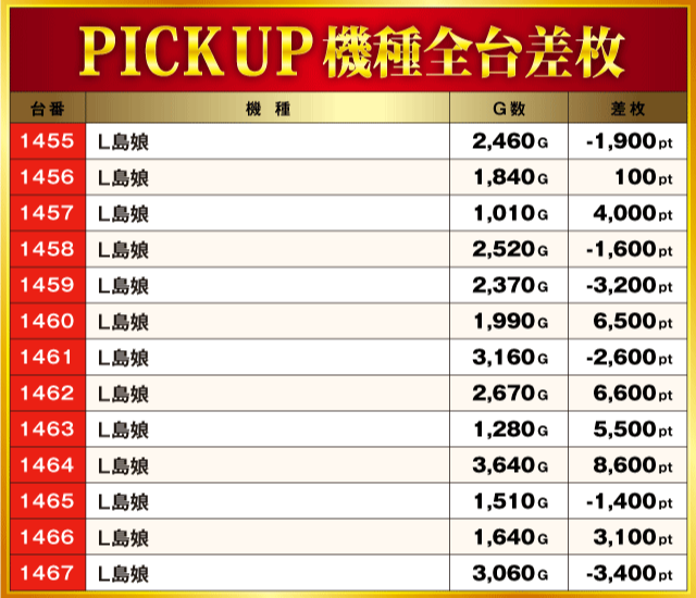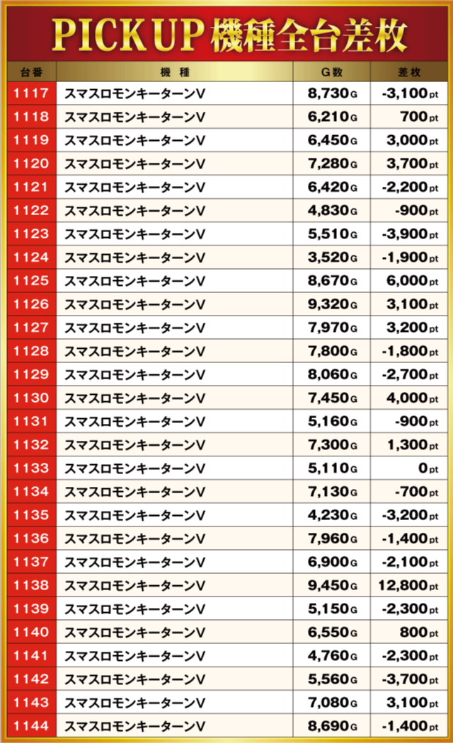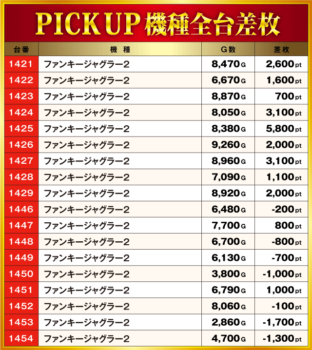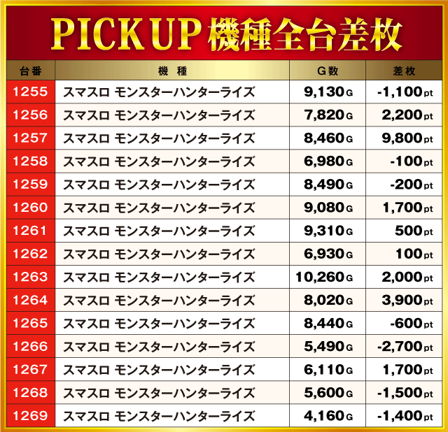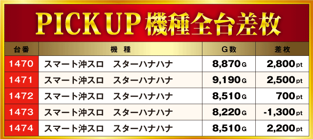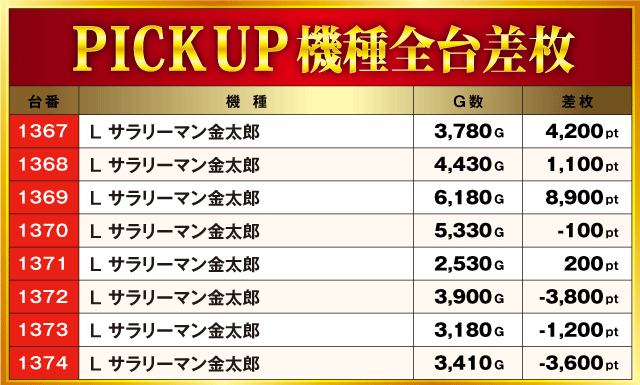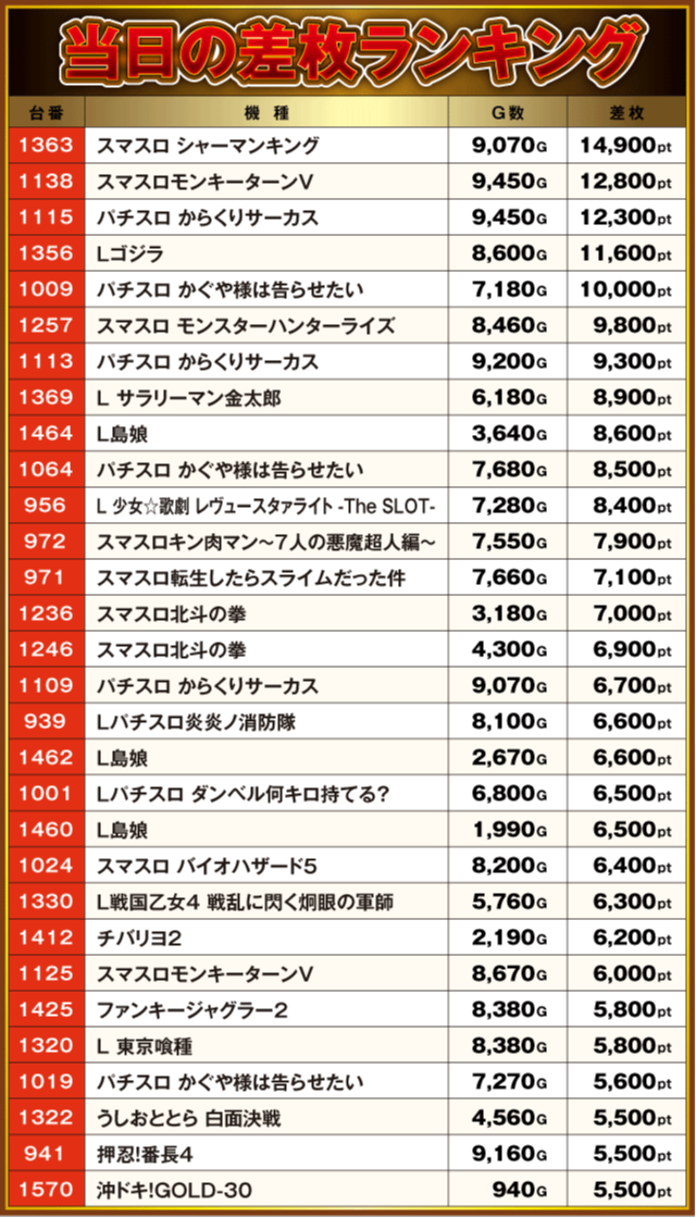 当日の差枚ランキング