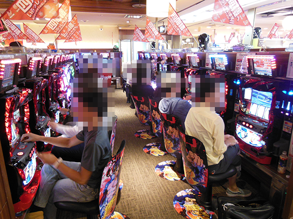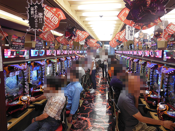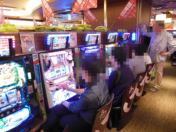 「沖ドキ!」や「ハナビ」、ジャグラーシリーズなどで遊技を楽しむプレイヤーも多く、華やかな光景が広がっていた。