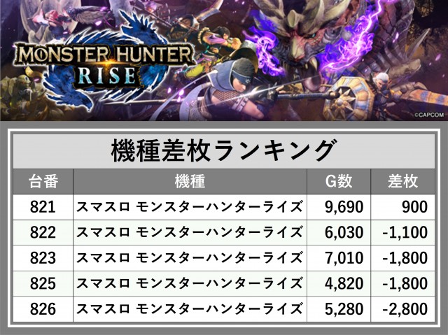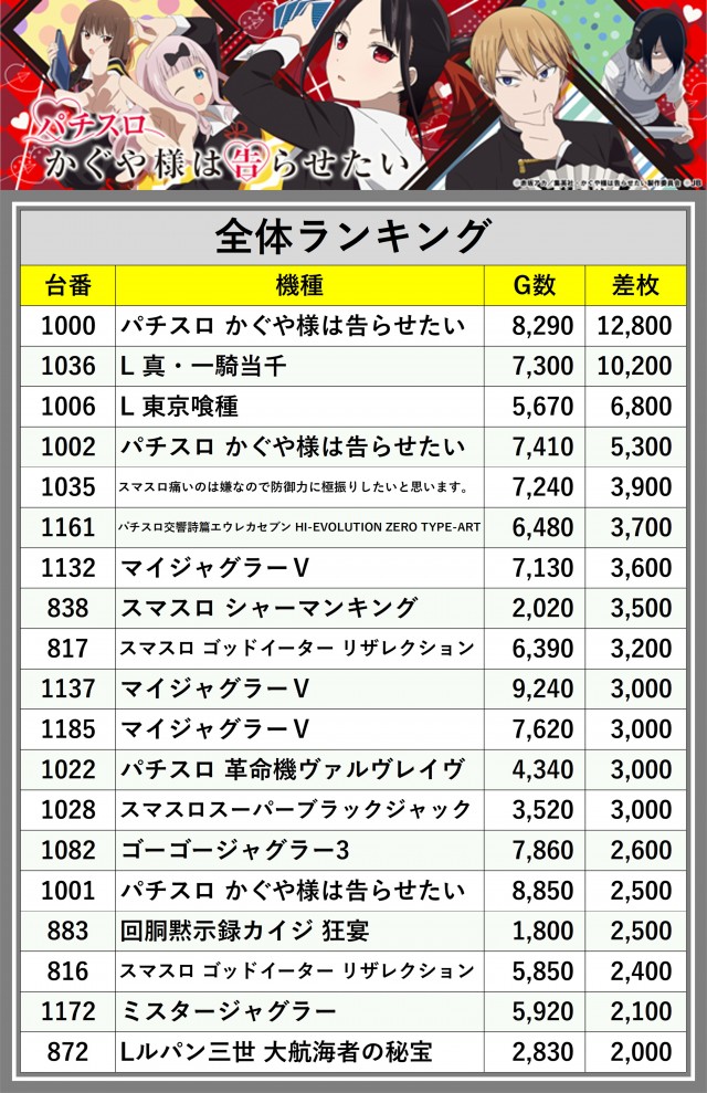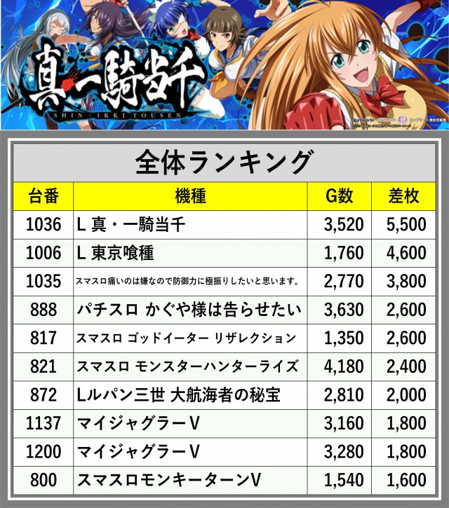 ※差枚数順に掲載しています