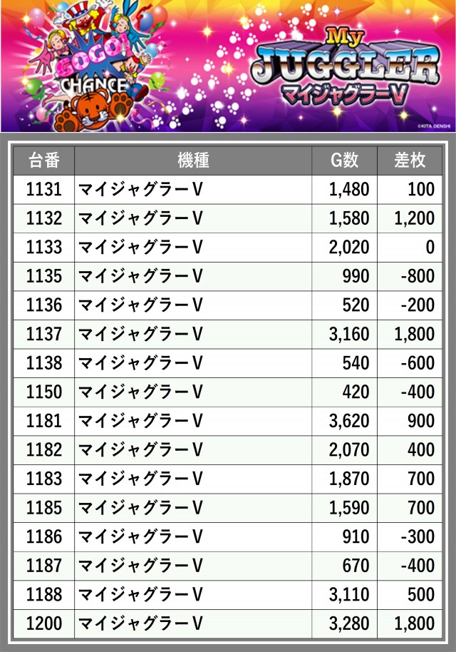※台番順に掲載しています