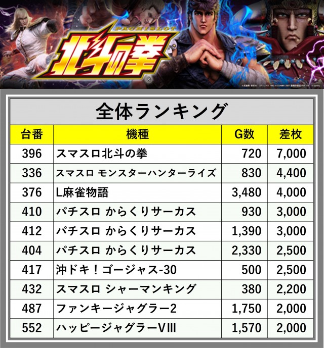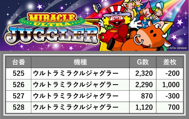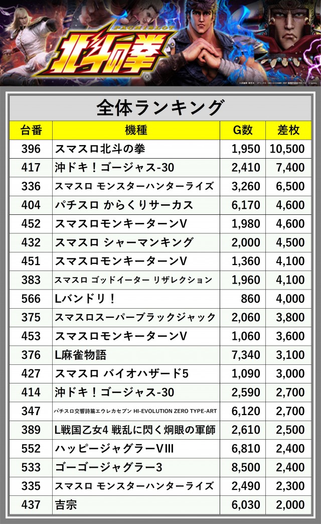 厳選された取材対象機種をはじめ、その他スロット全体から好記録が飛び出した!プレイヤーが楽しんだ1日を下記データにて振り返ってみて欲しい。