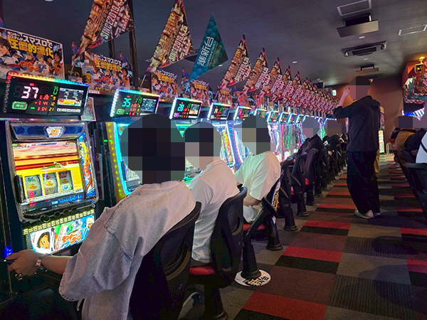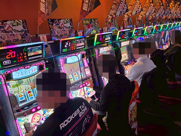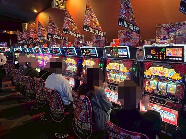 ほかにも「マイジャグラーⅤ」や「ジャグラーガールズSS」、「スマスロ モンスターハンターライズ」が活況。微笑ましいシーンをあちこちで確認している。