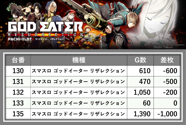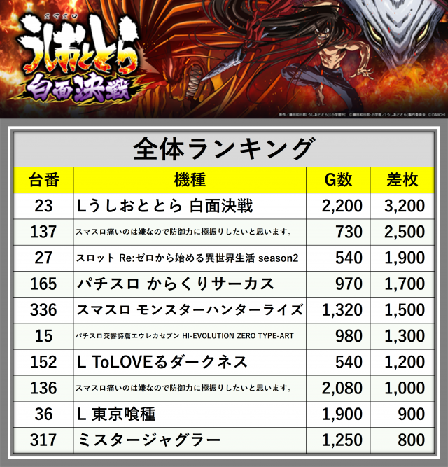 ※差枚数順に掲載しています