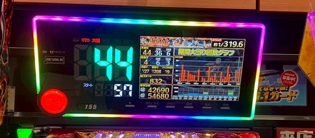 この日一番の出玉となったのが『P北斗の拳 暴凶星』。表示4万個となる台が複数見受けられた。