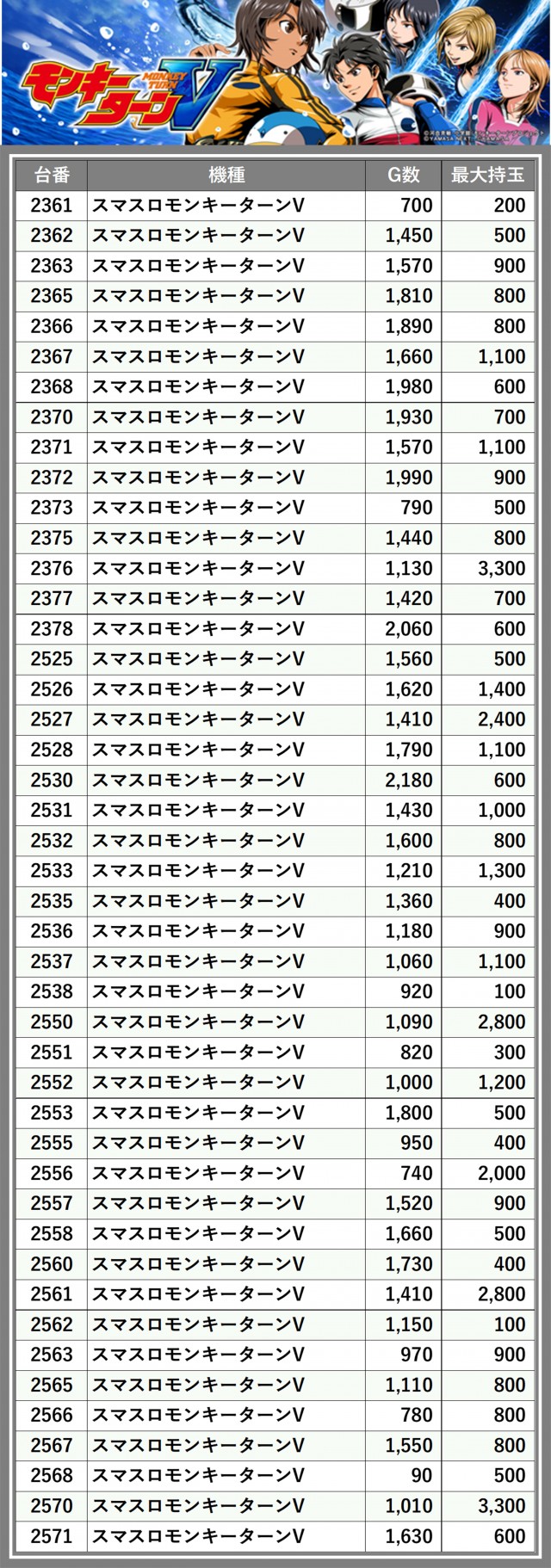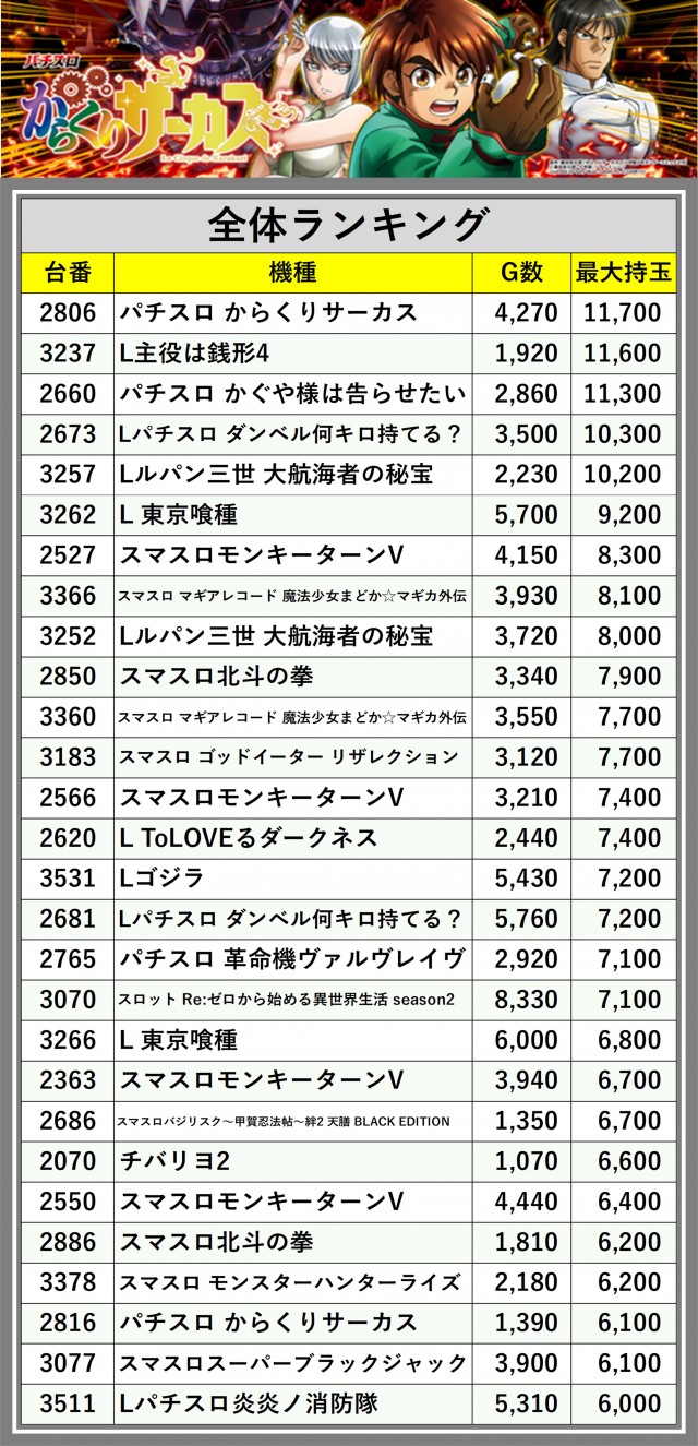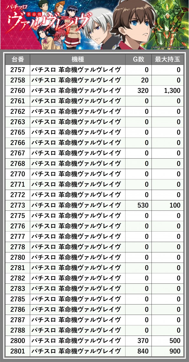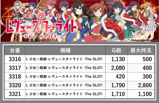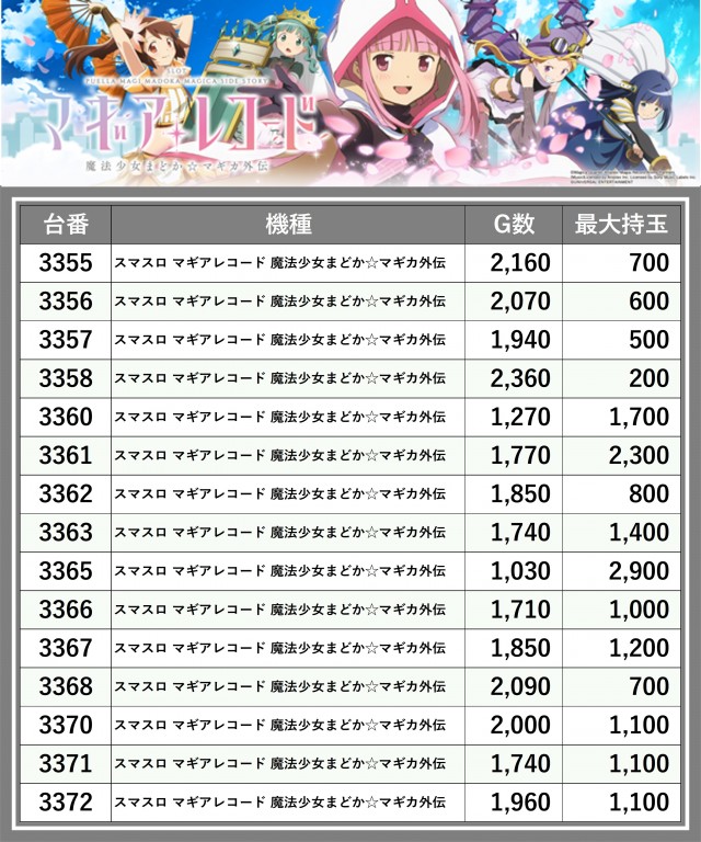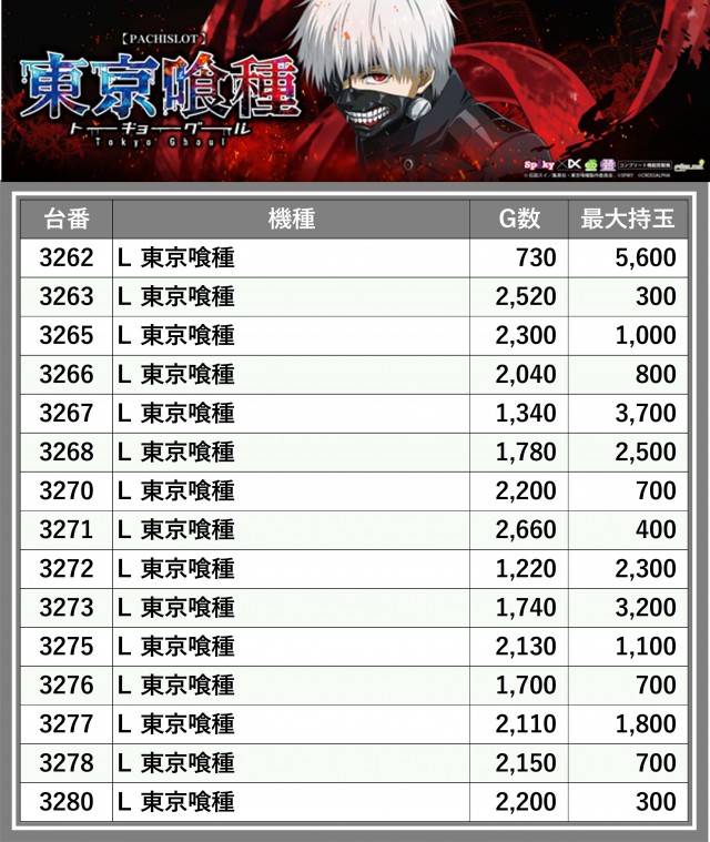 ※台番順に掲載しています