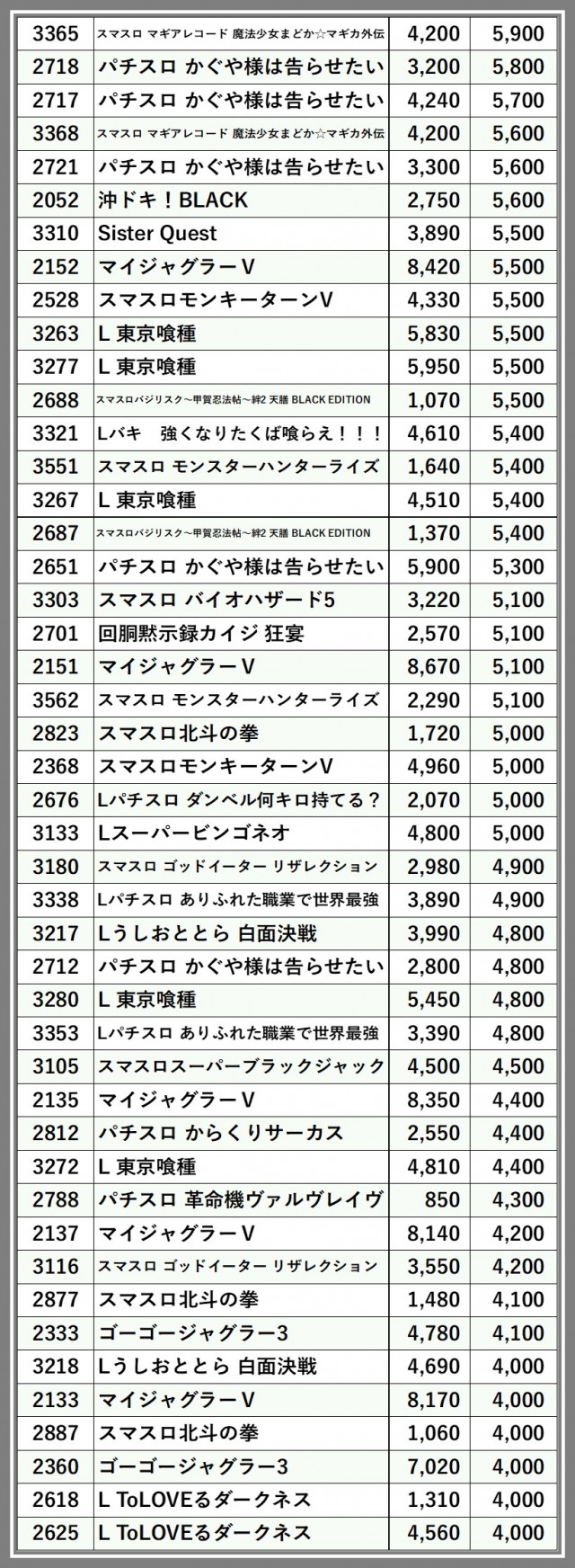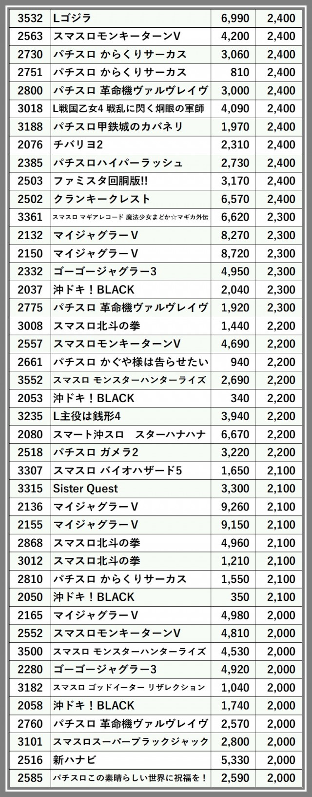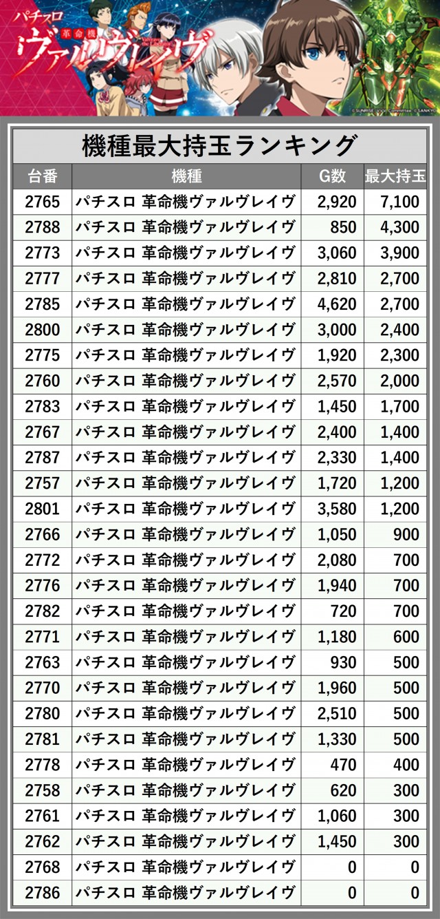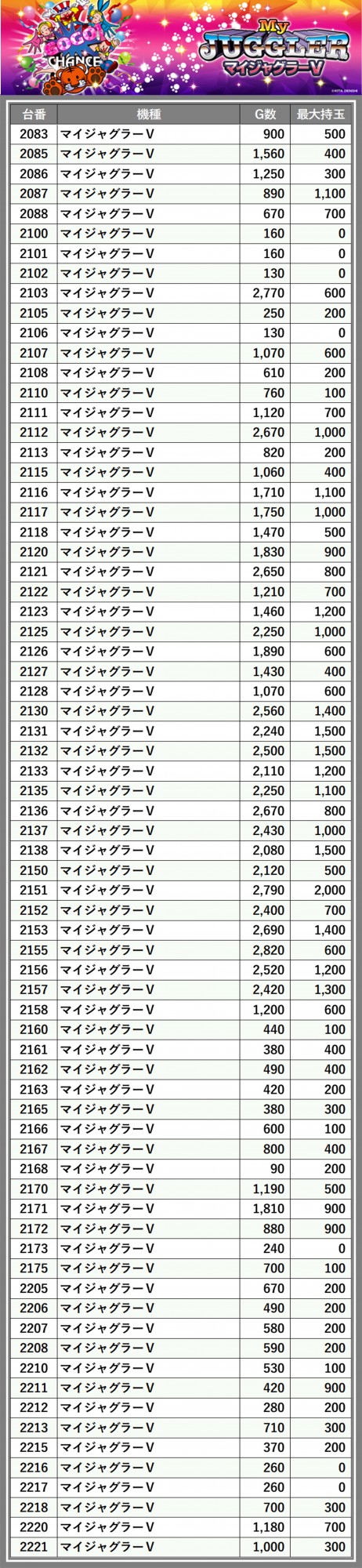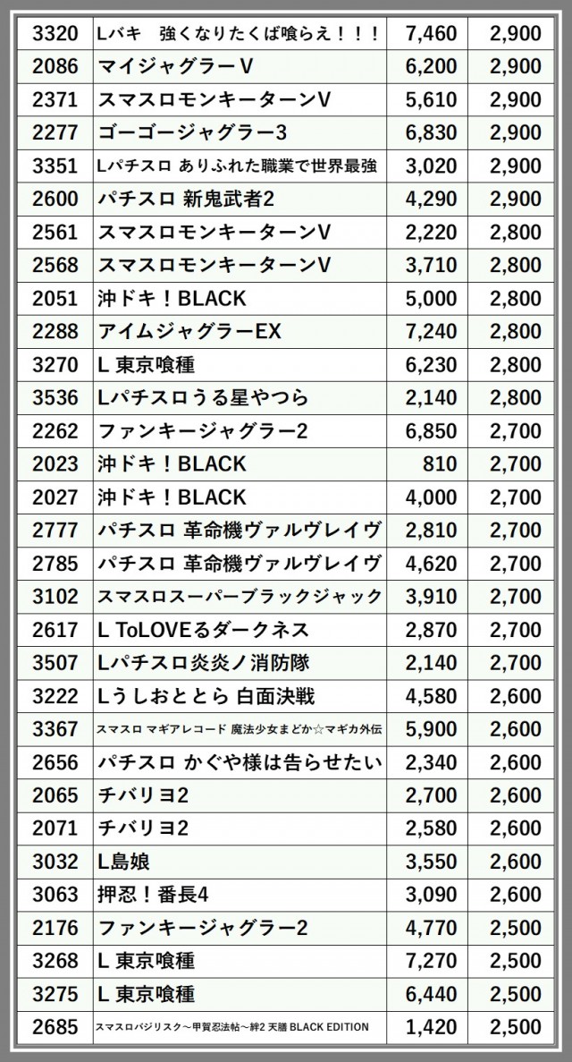 ※台番順に掲載しています