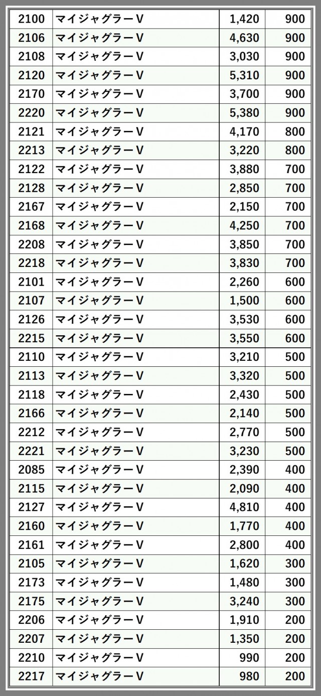 ※最大持玉数順に掲載しています