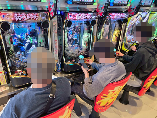 14時ごろの4円パチンコをチェックすると、「e真・北斗無双 第5章 ドデカSTART」や「e シン・ウルトラマン」で好調なプレイヤーを確認。時折見せる嬉しそうな表情が印象に残っている。