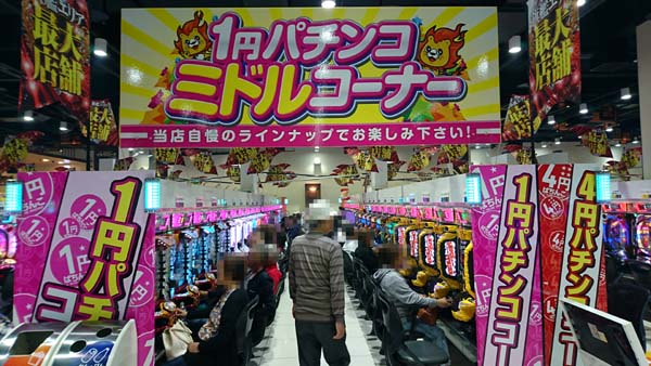 1円パチンコ、1000円/188枚パチスロの低貸しコーナーも人気。