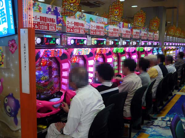 1円パチンコは年配のプレイヤーが多く、和やかな雰囲気。1円パチンコにおいても海物語シリーズの支持率が高く、ほとんど空台がない状況となっていた。