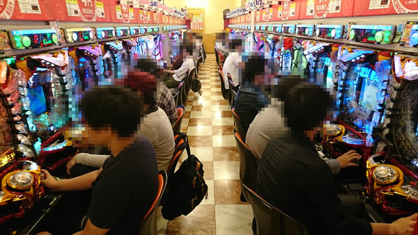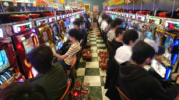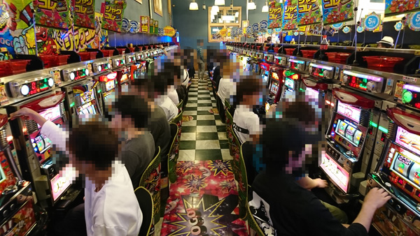 「バジリスク~甲賀忍法帖~絆」や「押忍!番長3」、「ミリオンゴッド-神々の凱旋-」などから機種の性能がフルに発揮され、シマには鮮やかな光景が広がっていた。