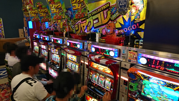 ジャグラーシリーズも空き台が見当たらないほどの活況で、シンプルな告知演出に一喜一憂するプレイヤーの表情は明るく、純粋に遊技を楽しんでいるように思えた。