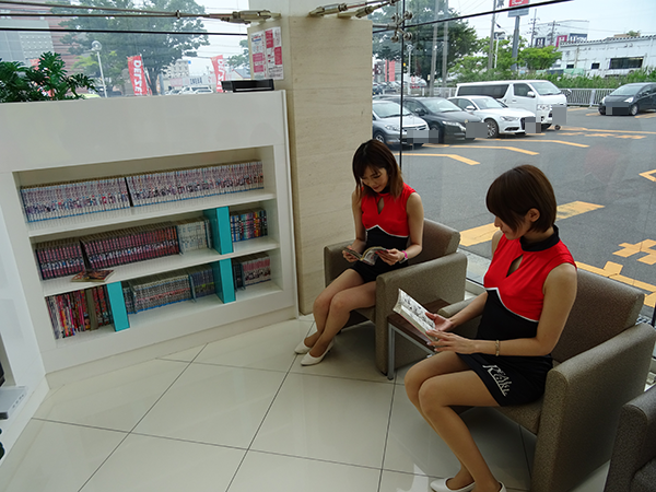 外からの光がはいるレストスペースも居心地がよく、友里奈ちゃんとさち。ちゃんもゆったりとくつろいでいた。漫画本や雑誌も用意されているため、有意義な休憩時間を過ごせることだろう。