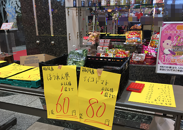 取材時の店内では野菜の販売もおこなわれており、こちらも好評。遊技以外でも楽しめる印象を受けた。