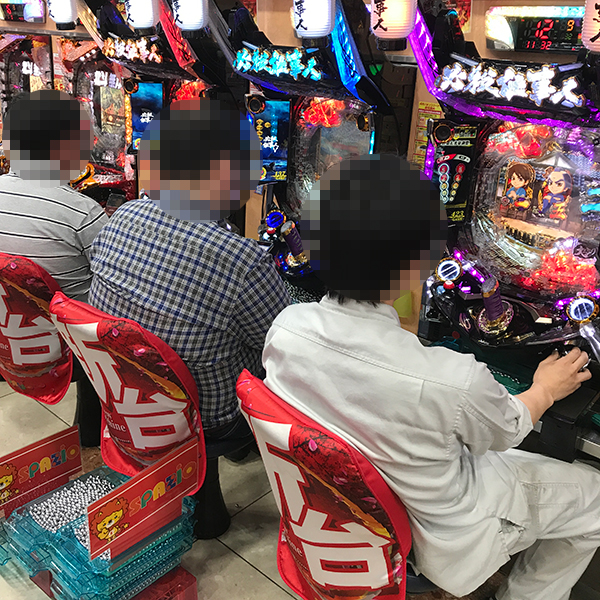17時半過ぎの4円パチンコでは、新台の「CRぱちんこ必殺仕事人Ⅴ」が満席状態で大盛況。