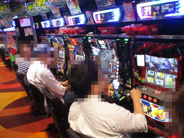 午後のパチスロのなかで、とくに注目されていたのが「バジリスク~甲賀忍法帖~絆」。華麗なパフォーマンスを披露するプレイヤーが多く、活気も感じられた。